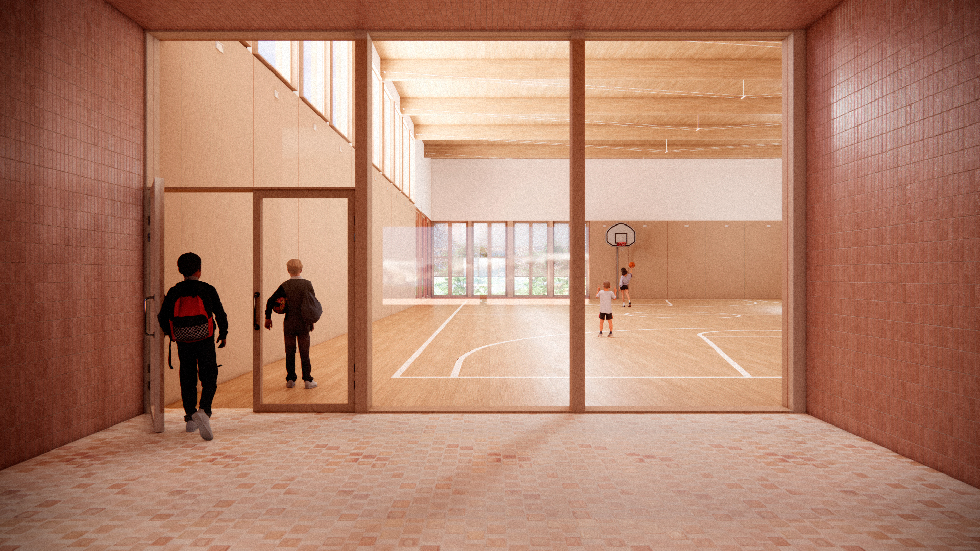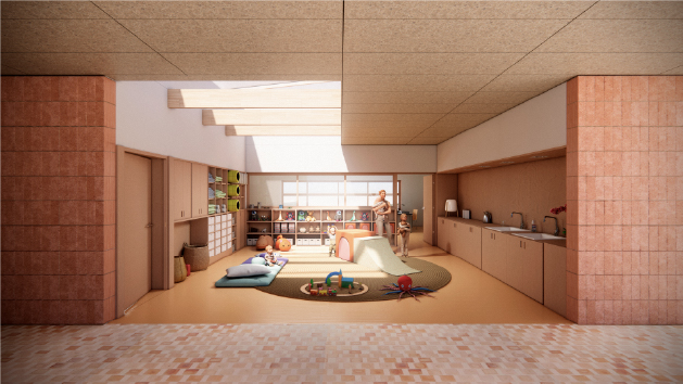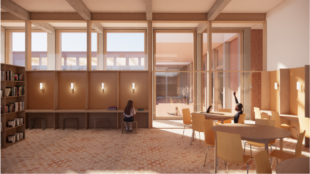 A clustered classroom wing that supports flexible and social learning, with adaptable classrooms accommodating multiple configurations and informal learning zones that encourage movement, experimentation and appropriation. Visual connections between spaces promote collective learning, while human-scaled environments invite choice and independence, and a clear spatial organization supports orientation and emotional safety.