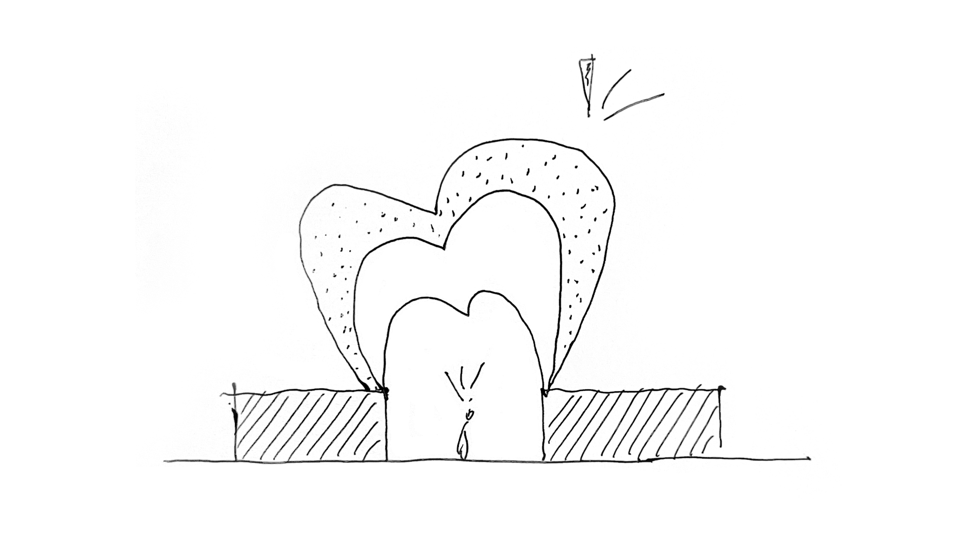 The interior layout takes cues from the typology of historical casinos: a fluid sequence of spatial clusters organised around a central dome carved inside the heart.